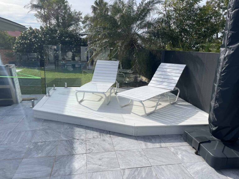 It is not always about large expansive decks: This home owner really understood how to make the most of their garden and pool space to install small yet stylish decking areas. Utilising the corner space and working the angles of the boards takes a lottle planning and well worth the effort when it creates such inviting spaces.